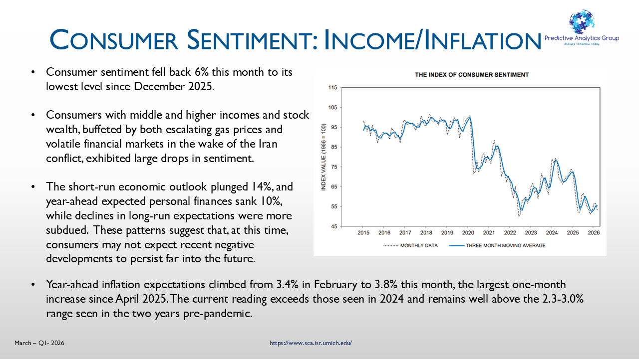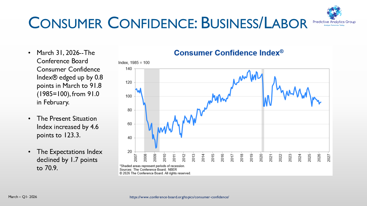 Appears to be correlated with the strength of the economy at the time of the survey as consumers dictate the flow and demand of goods and services.